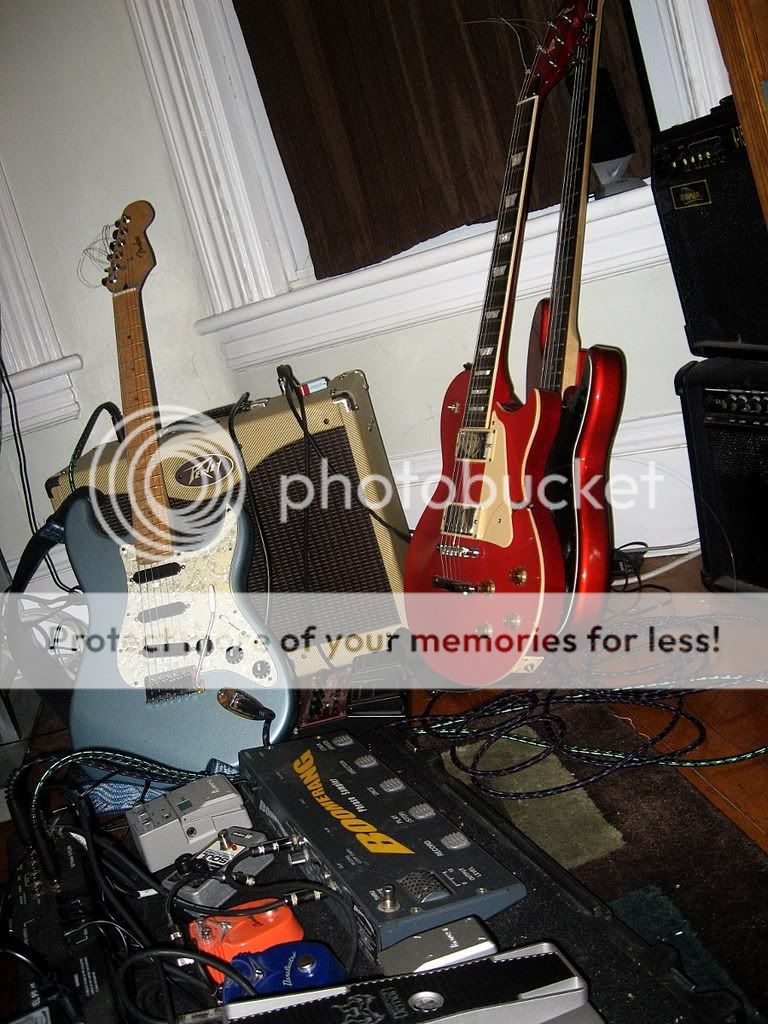 Nice pile of kit there. I too have a Peavey amp - the Classic 30, with 7 gorgeous valves in, enabling me to blow away much bigger solid-state amps in terms of tone and volume. Just a pity I can\'t play my Epiphone semi the way Jorma Kaukonen does...